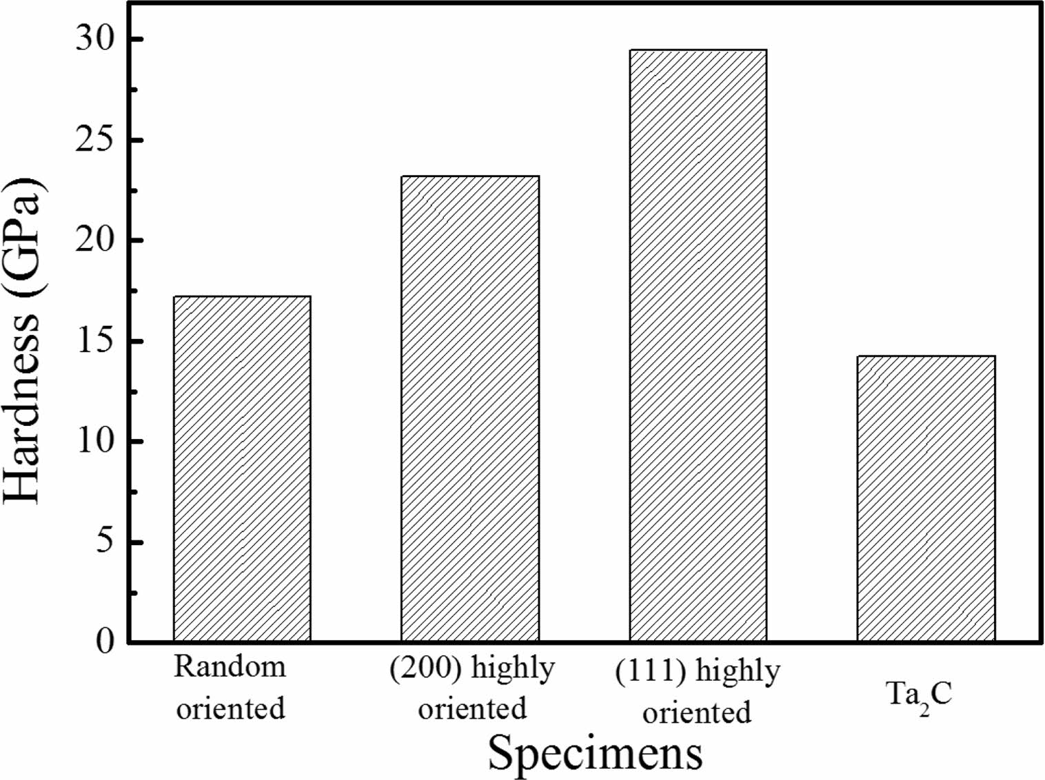 Fig. 5 Hardness of TaC specimens with different orientations and phases. |
