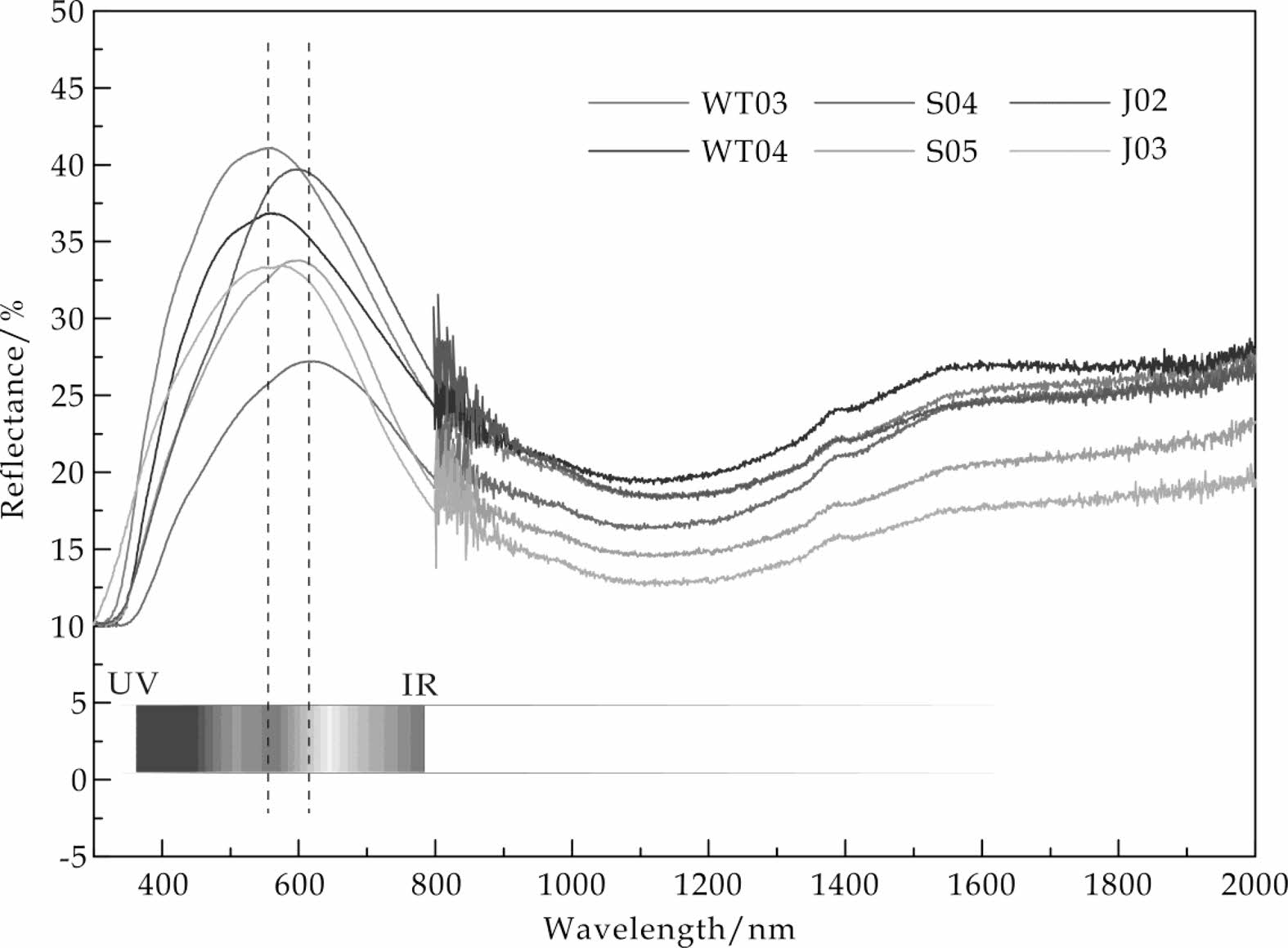 Fig. 9 Reflection spectrum of samples |