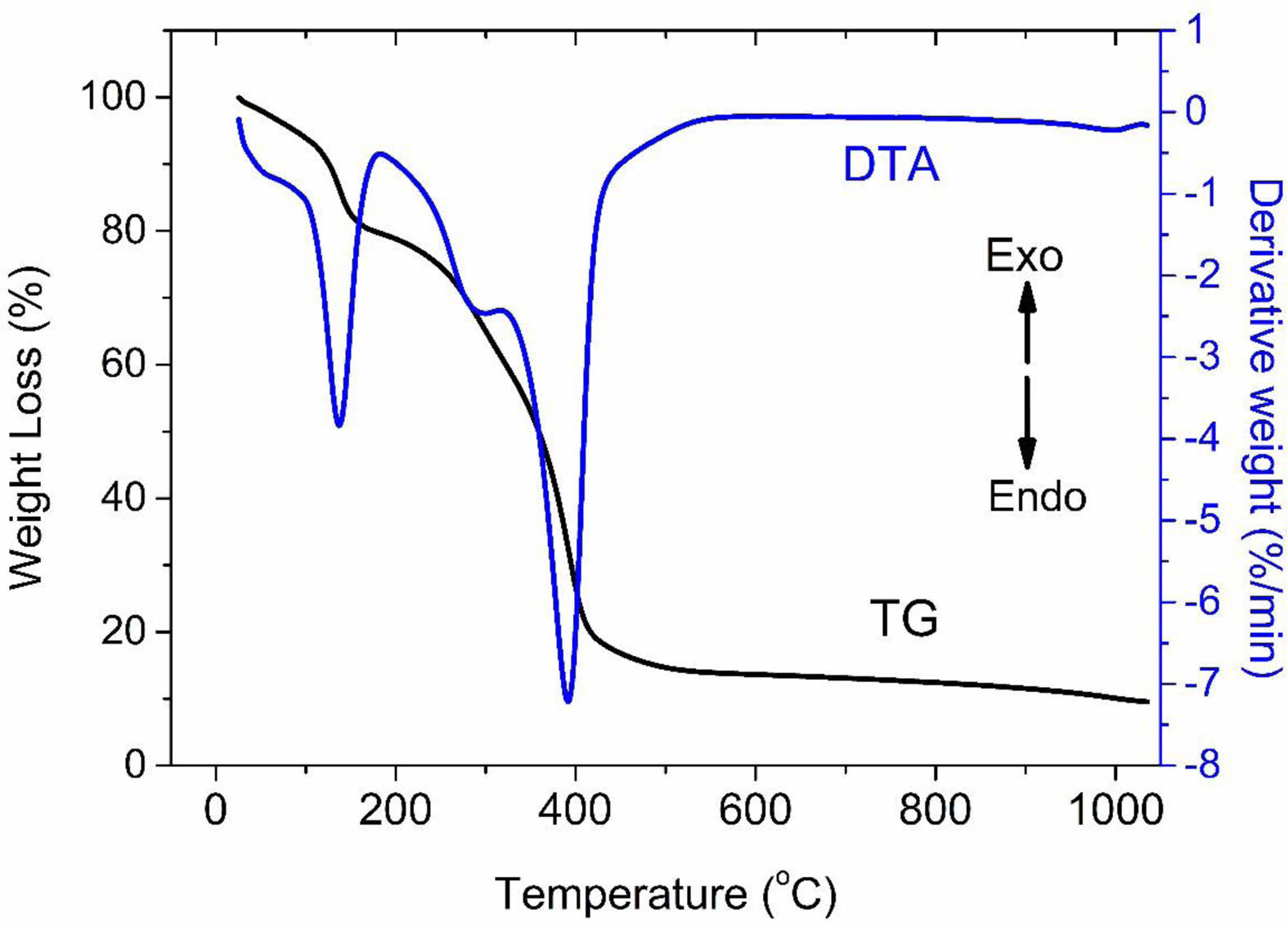 Fig. 9 TG-DTA curve of GGG1 precursor. |