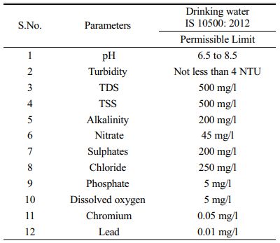 The physical and chemical parameter of water are tested with the samples that are collected as compared with the Permissible limits expressed in Table 2. The resulting values from the 60 samples collected are mentioned in Table 3.