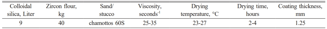 The wax pattern coated with the first slurry is dried for 24 hours, dried at a temperature of 23-27 °C, for 24 hours. After drying and hardening, and obtained a layer thickness of 0.39 mm, it is then dipped into the second slurry, with the materials shown in Table 2.