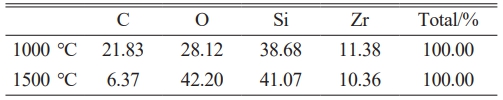 Table 3 lemental distribution (EDX mapping) for SiC-ZrB2 powder after 30-min oxidation at 1000 °C and 1500 °C.  |