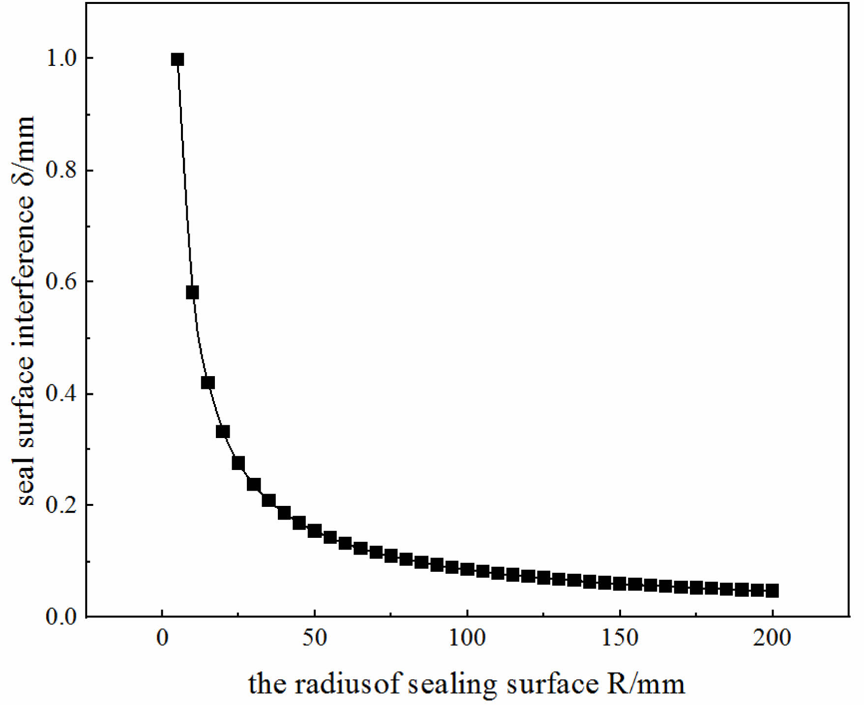 Fig. 4 Relationship between sealing surface contact radius and sealing interference.  |