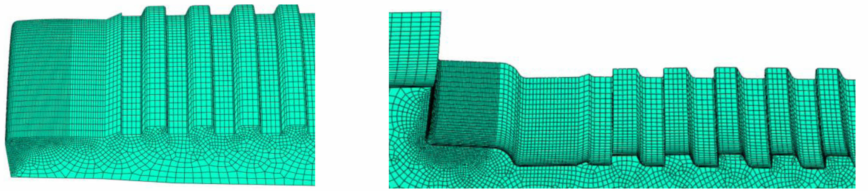 Fig. 7 Finite element model and meshing of a special threaded joint.  |