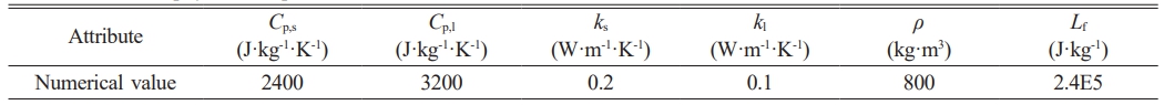 (3) The phenomenon of overheating or overcooling is regarded as non-existent in the simulation. Due to the high purity of paraffin wax, the nucleation conditions can be easily controlled and the phenomena of overheating and overcooling can be neglected.