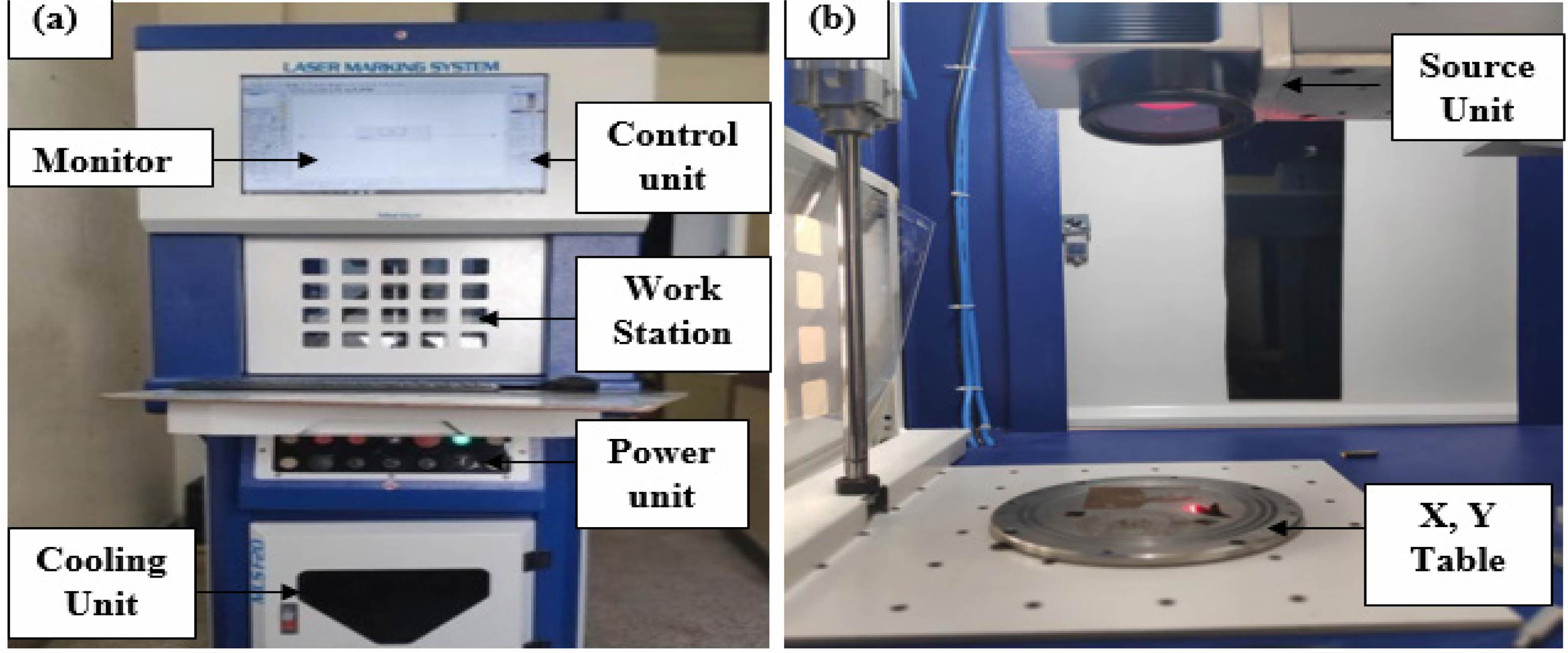 Fig. 1 (a & b): Fiber laser micro machining setup.  |
