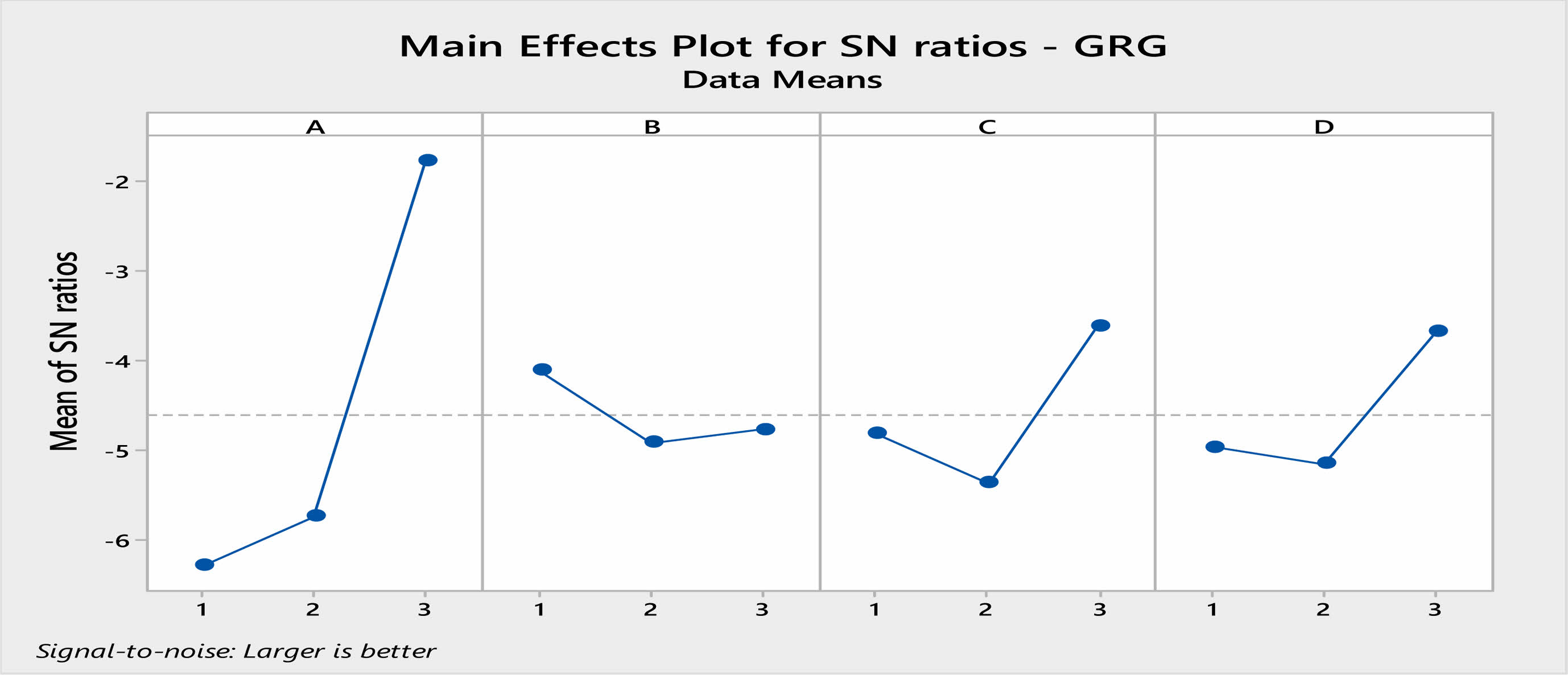 Fig. 6 Plot of Main Effects - Signal - Noise Ratio (GRG).  |