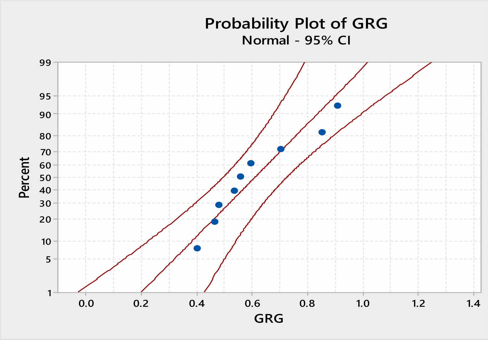 Fig. 7 Probability plot of GRG showing 95% confidence level  |