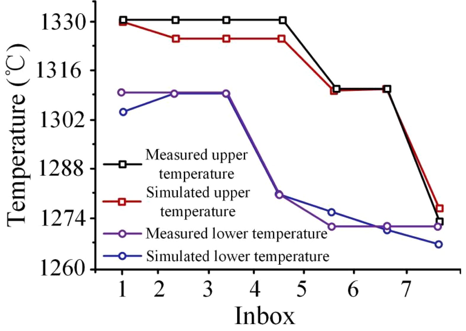 Fig. 9 Curve of simulated temperature and measured temperature distribution. |