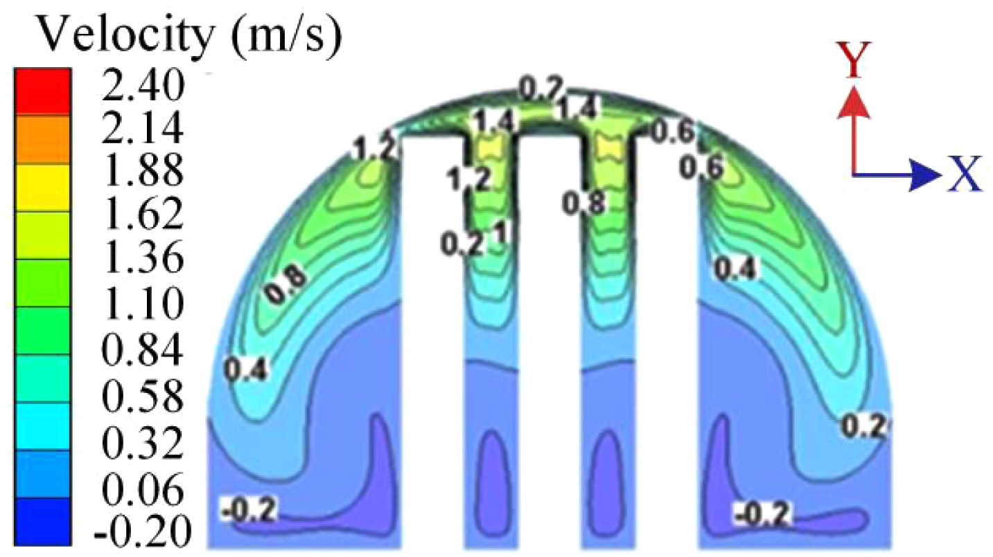 Fig. 10 Velocity distribution profile in the middle of the front chamber. |
