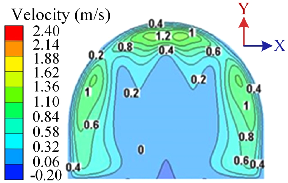 Fig. 11 Velocity distribution diagram of waist section of gourdshaped kiln. |