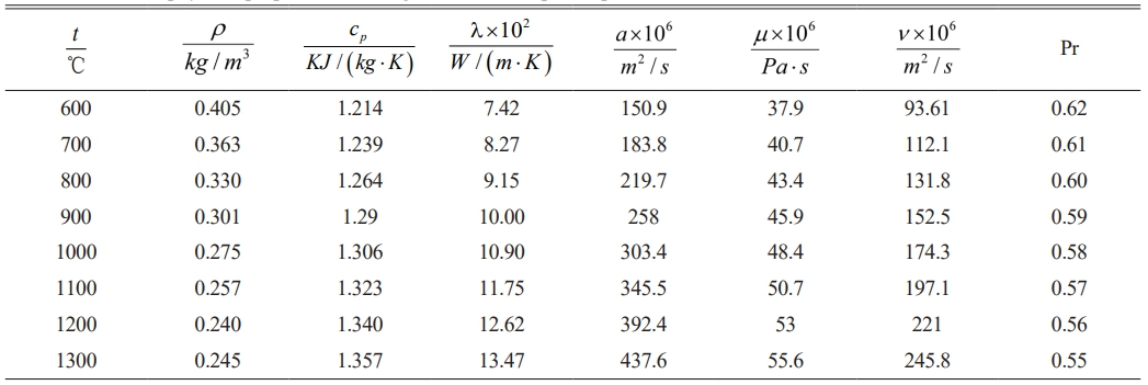 Table 1 Thermal physical properties of flue gas under atmospheric pressure [29]. |