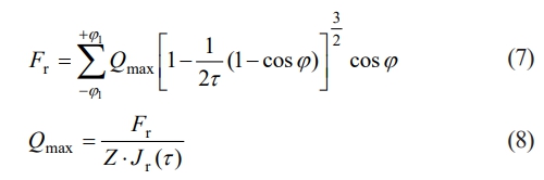 From the equation, it can be observed that the limiting angle φ1 < 90o indicates that the load-carrying region is less than 180°. According to Hertzian contact theory [25, 26], the relationship between deformation and contact load within this region is given by: