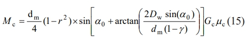 In the equation, dm is the pitch diameter of the bearing, α0 is the initial contact angle of the bearing, and γ is a dimensionless parameter. γ = Dw cos(α0)/dm. Gc is the weight of the cage, and μc is the sliding friction coefficient between the rolling element and the cage pocket, which ranges from 0.2 to 0.4.