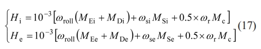 The internal temperature rise of the bearing is determined by the frictional torques of its components. The heat generation of the inner and outer races, Hi and He respectively, is given by: