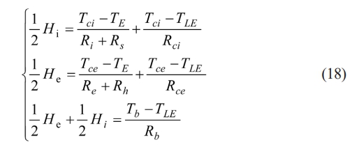 From Fig. 2, the heat transfer equations involving three unknown temperatures Tci, Tce, and Tb can be obtained as follows: