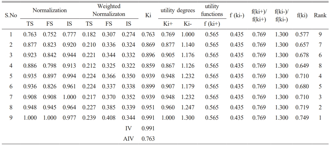 Step 5 Assessment of the utility value of alternatives. The following formula is used to calculate the utility degrees for IV and AIV.