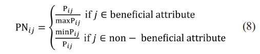 Equation (8) is then used to normalize the performance matrix, Pijm×n, to PNijm×n.