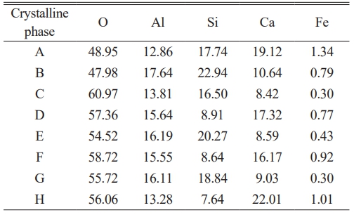 Table 6 Atomic ratios (at.%) of crystalline phases in glassceramics with different B2O3 contents. |