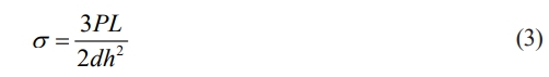Where σ is the flexural strength, MPa; P is the maximum applied load, N; L is the span, mm; d is the width of the specimen, mm; and h is the height of the specimen parallel to the loading direction, mm.