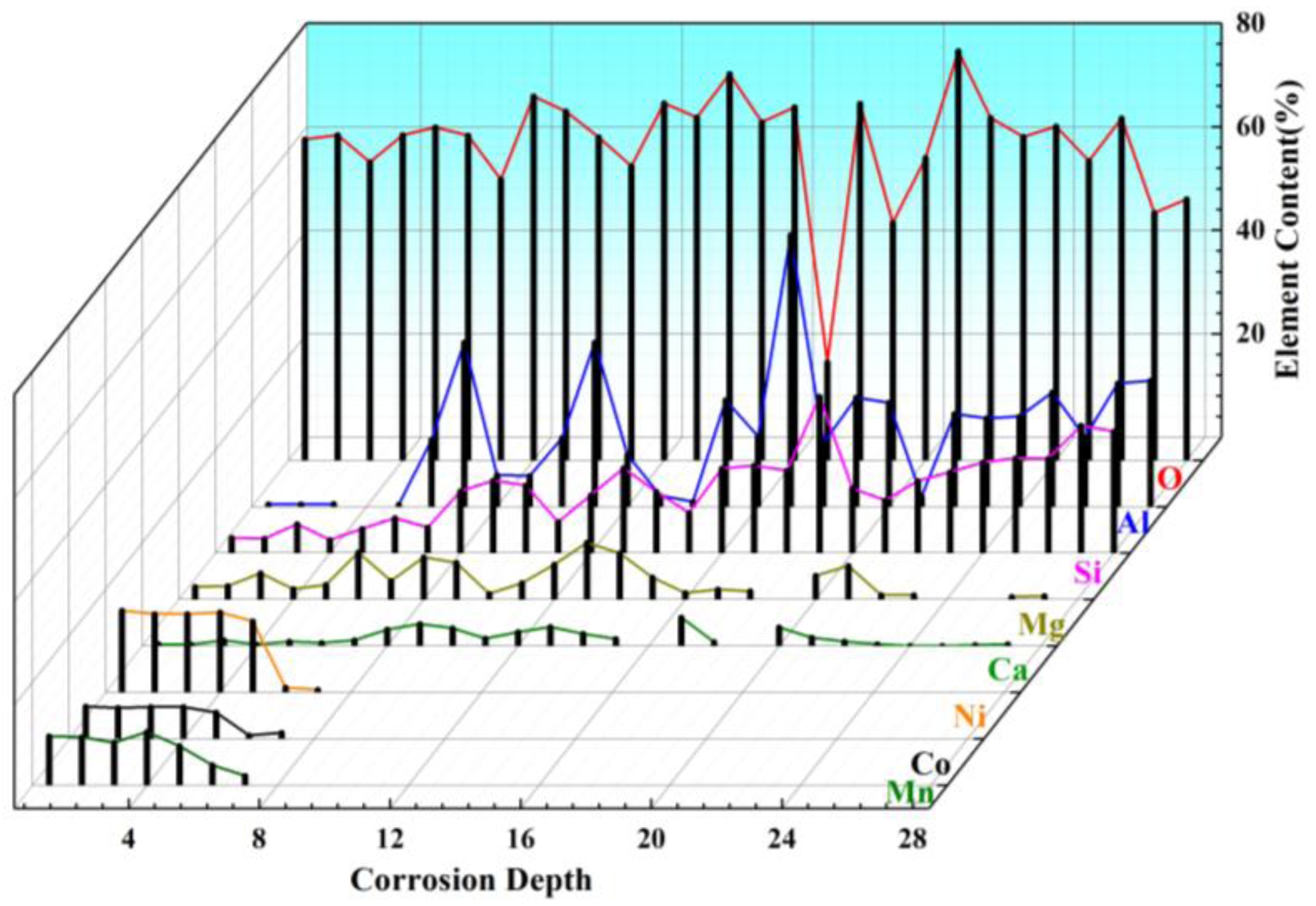 Fig. 12 Surface corrosion depth development with increasing corrosion cycles. |