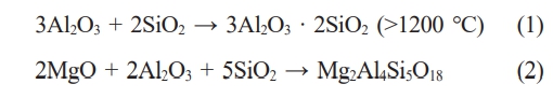Cordierite (Mg₂Al₄Si₅O₁₈) demonstrates multiple advantageous properties including excellent thermal stability, low coefficient of thermal expansion, high electrical resistivity, and cost-efficiency [12-14]. However, its applications are hindered by inherent limitations in mechanical strength and chemical resistance [15-17]. In contrast, mullite (3Al₂O₃·2SiO₂) exhibits favorable chemical resistance, high creep resistance, excellent high-temperature stability, enhanced mechanical strength [18-20] and high thermal shock resistance. To capitalize on these complementary characteristics, mullite-cordierite composite materials have been engineered through strategic phase combination. These composites integrate the low thermal expansion of cordierite with the mechanical robustness and chemical stability of mullite by boasting high thermal conductivity, robust mechanical strength, and superior thermal shock resistance, making them particularly suitable for demanding refractory applications such as kiln furniture and high-temperature containment systems [21-25].