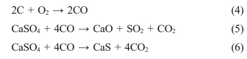 In fluidized bed suspending mode, the coal is oxidized to form CO gas, and then the CO reacts with gypsum to form calcium oxide, but CaS will be generated in a strong reducing atmosphere. When the CO concentration is 2%, the highest CaO content is 91.6% in the product [14].