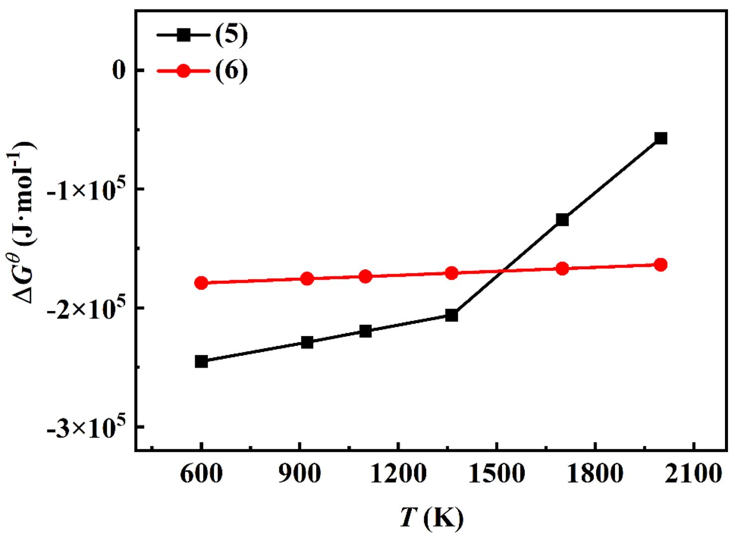 Fig. 1 The ∆Gθ -T relationship diagram of the reaction. |