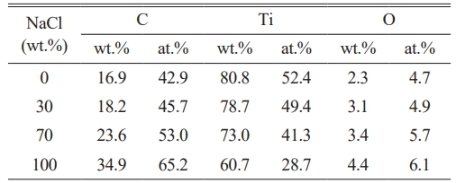 Table 4 The proportion of elemental content in TiC synthesized with different amounts of NaCl. |