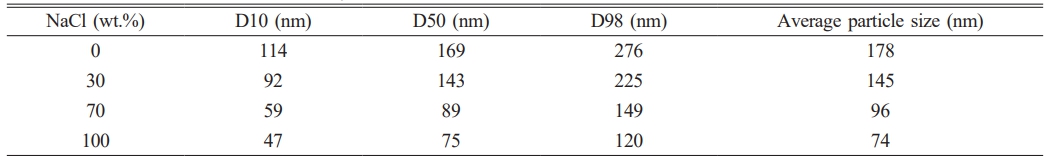 Table 6 Particle size indicators for TiC synthesized with different amounts of NaCl. |