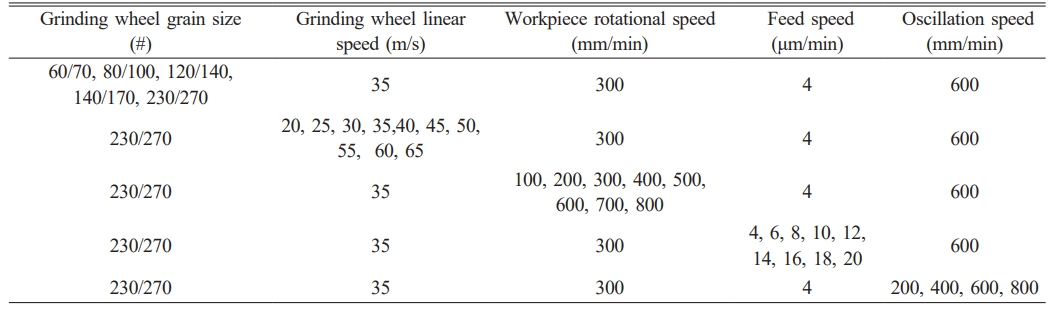 2. Grinding wheel oscillation speed.