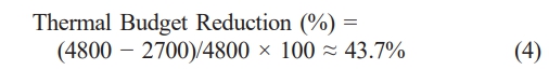 The percentage reduction in the thermal budget is calculated as: