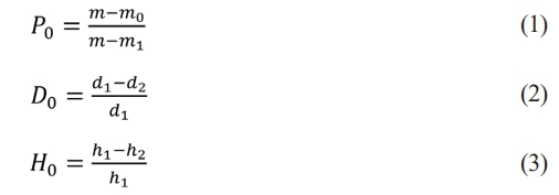 where P0 is the apparent porosity, m0 is the dry mass of specimen, m is the mass of the sample after saturation with water, m1 is the mass of specimen after water absorption. D0 and H0 are the diameter and height shrinkage rate of the samples, respectively. d1 and h1 are the diameter and height of the green samples, and d2 and h2 are the diameter and height of the sintered samples, respectively.