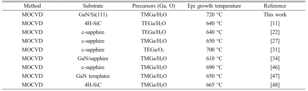 Table 2 Maximum reported growth temperatures for single-phase κ-Ga₂O₃ grown by MOCVD. |