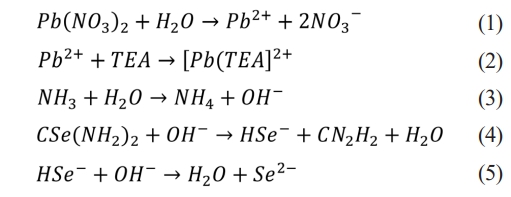 The mechanism underlying the formation of PbSe thin films can be described by the following chemical equations.
