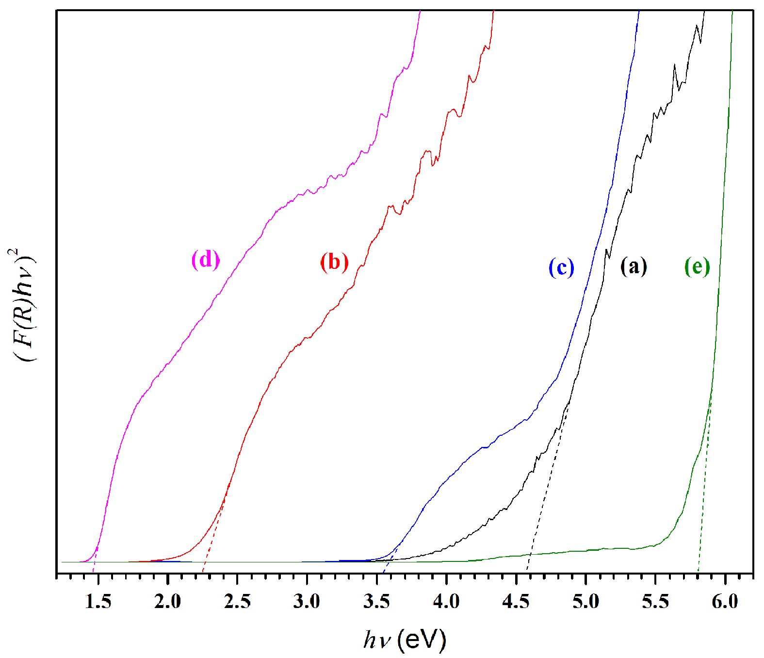 Using the UV-DRS spectra, assessment of the optical band gaps was carried out via the Kubelka-Munk function presented in Equation (1) along with the Tauc relation shown as Equation (2) [48]: