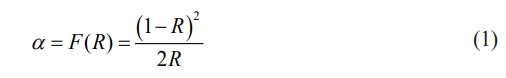 in which is the Kubelka-Munk function, the absorption coefficient is given as α, while reflectance is indicated by R.