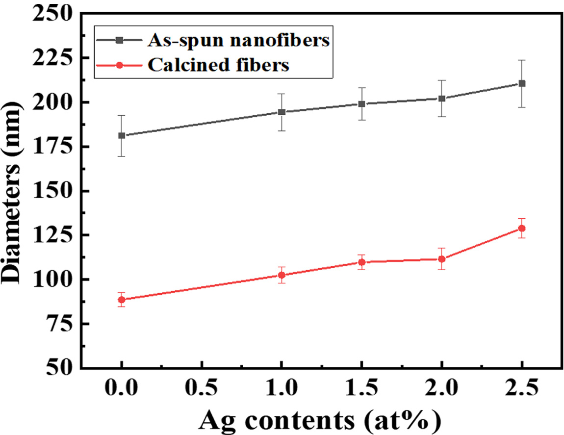 Table 1 The average crystallite size of the Ag nanoparticles in the electrospun Ag-ZnO nanofibers calculated via the Scherrer equation |