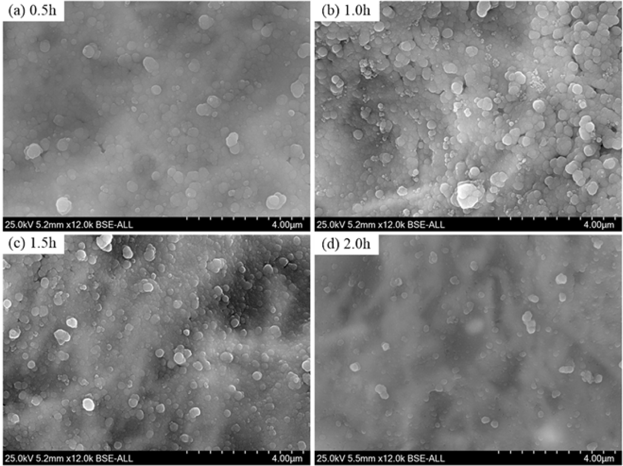 Fig. 12 Microstructures of the glass-ceramics with different crystallization duration after chemically etched. |