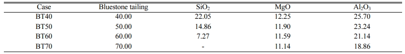 Table 3 Chemical compositions of cordierite glass-ceramics with different bluestone tailing ratios (wt%) |