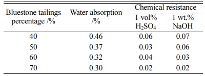Table 7 The water absorption and chemical resistance of the