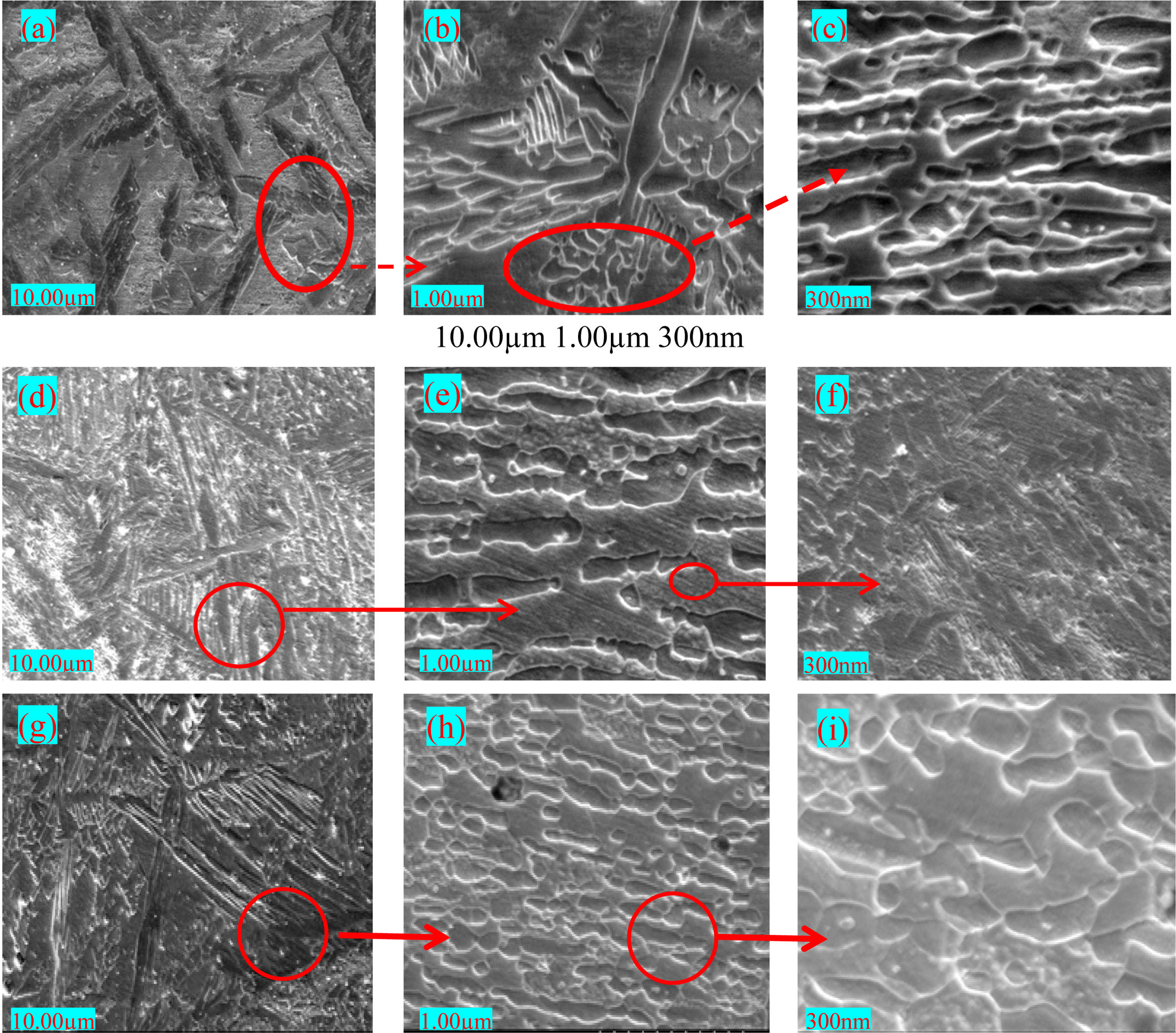 Fig. 5 FESEM analysis, (a-c) CC mode, (d-f) PC mode (g-h) STT mode. |