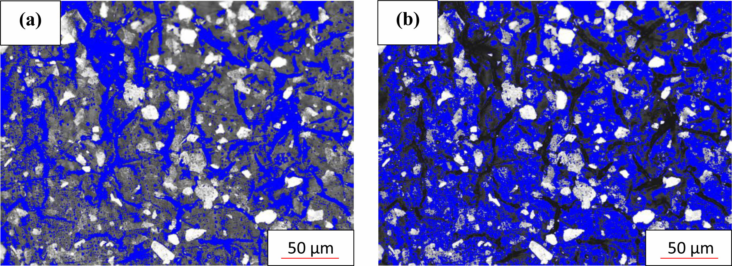 Fig. 1 Optical Microscope image of cryogenic treatment: (a) 49Ni-51Ti and (b) 47.5Ni-49.5Ti-1.5MWCNT. |