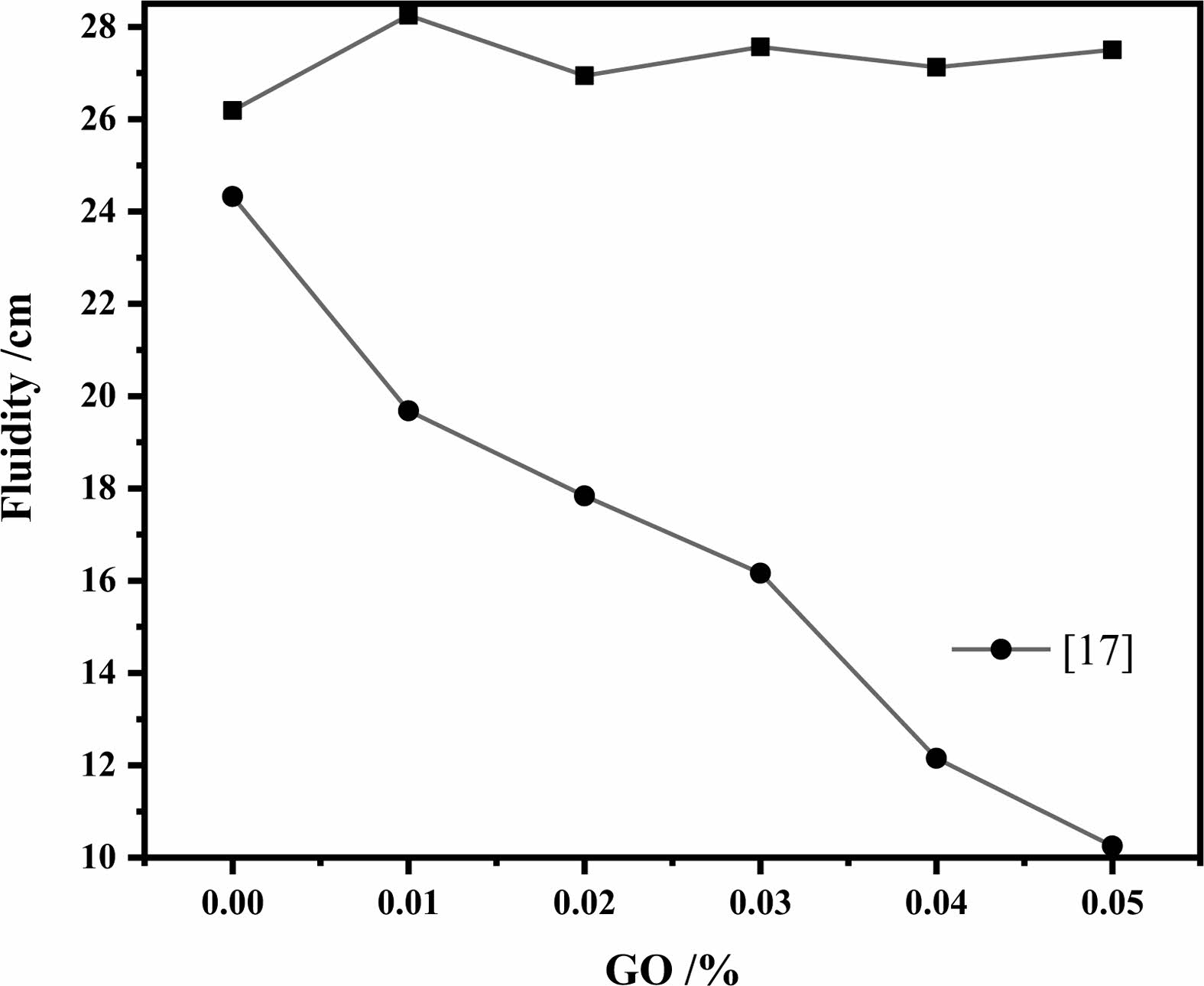 (1) Polycarboxylic acid water reducing agent can stabilize the fluidity of concrete with GO and reduce the adverse effect of GO on the fluidity of concrete.