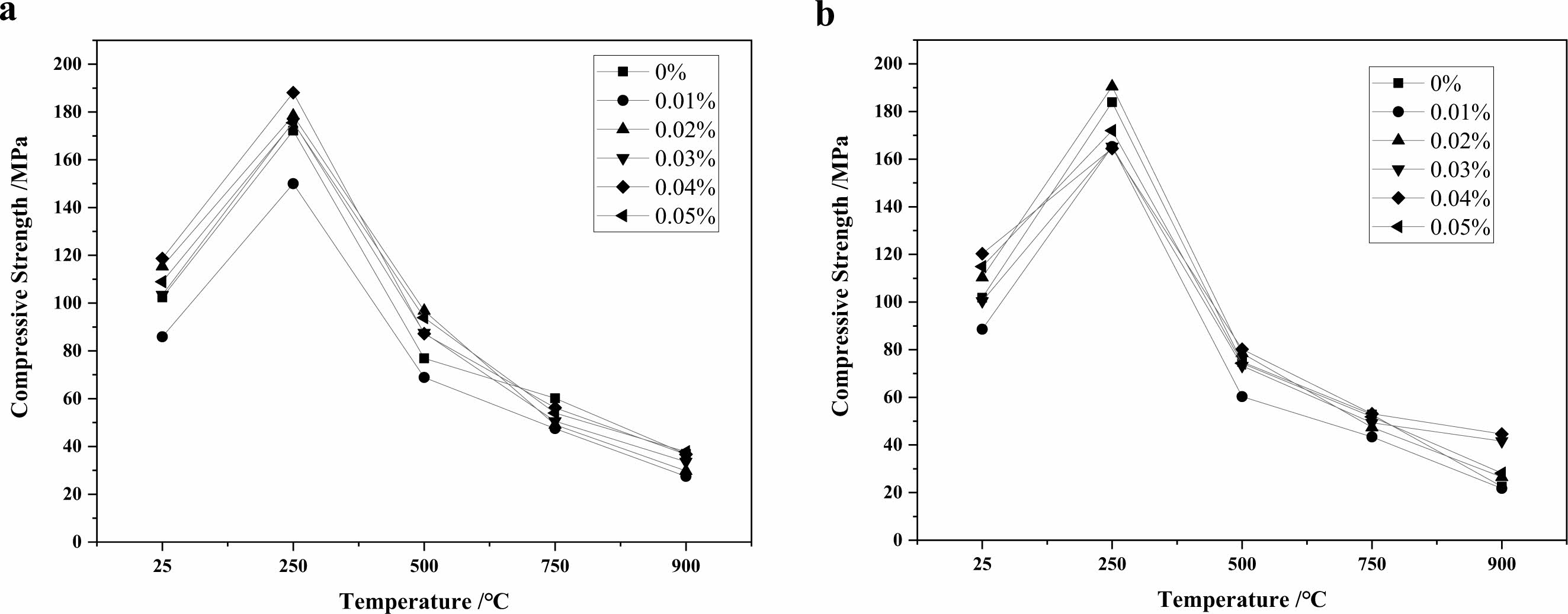 The prepared high-strength concrete was thermally treated at 250 ℃, 500 ℃, 750 ℃ and 900 ℃, then its mechanical properties, mineral composition and microstructure, etc. were tested.