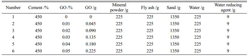 Referring to the concrete design standards and the results of the relevant literature, the test design water-cement ratio is 0.25, the matching ratio is shown in Table 2, the specific amount of each group of materials is shown in Table 3.