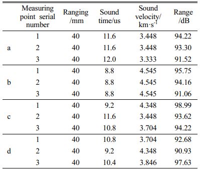 Denseness detection using ultrasonic nondestructive testing instrument, the use of different reflection signal transmission time difference to the probe, can check the internal defects of the components, where the box represents the sound time abnormal, the ellipse represents the amplitude abnormal, the more abnormal signal appears represents the more obvious defects, the detection results are shown in Fig. 7, the test results are shown in Table 6.