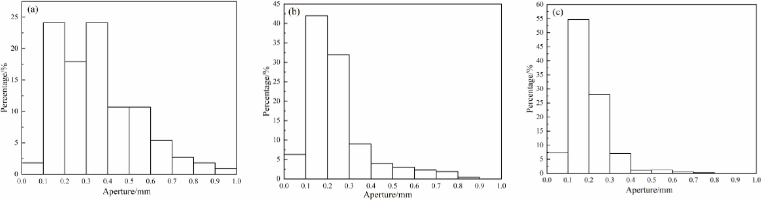 Fig. 3 Closed pore aperture distribution at different sintering temperatures (a: 1150 ℃, b: 1180 ℃, c: 1200 ℃) |
