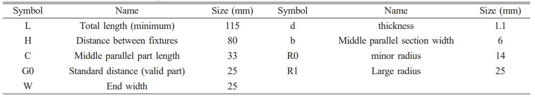 Test piece design refer to GB-T1040-1992 Plastic Tensile Performance Test Method [9], the schematic diagram is shown in Fig. 2, and the specific dimensions are shown in Table 1, the film thickness is 1.1 mm. The specimen is constantly stretched along the longitudinal spindle of the specimen until breaking, testing the load and its elongation during this process. PVB test strips were cropped from the same lot of PVB plates. PVB specimen shape is not distorted, adjacent planes are perpendicular to each other, specimen surface and specimen edge are no scratches, dents, cavity and burr defects. During the test, the dumbbell specimens with shoulder fracture or plastic deformation extending to the whole shoulder width shall be discarded and retested again.
