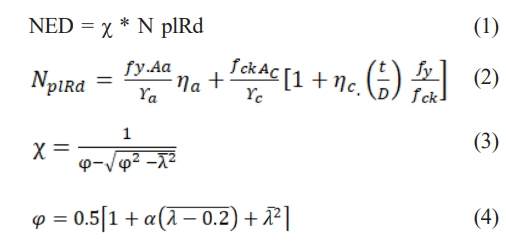 Where ηc is a concrete-confinement factor and ηa is a steel resistance reduction factor. NED is the design resistance.